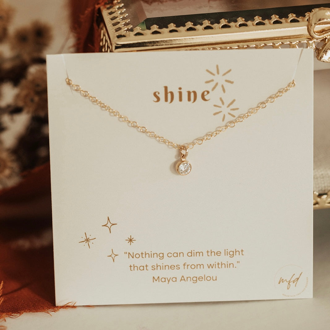 Add a little sparkle to your life with this dainty 4mm cubic zirconia drop pendant necklace! She looks beautiful worn casually or dressed up for a night out, the perfect every occasion piece! Comes on a beautiful necklace card ready for gift giving: shine- Nothing can dim the light that shines from within -Maya Angelou